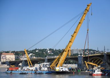 Reflotan el barco turístico hundido en el Danubio tras ser embestido por un crucero. Una grúa ha extraído del fondo del río la embarcación. Se han recuperado los cuerpos de cuatro de los ocho desaparecidos. Otras veinte personas murieron en el accidente.