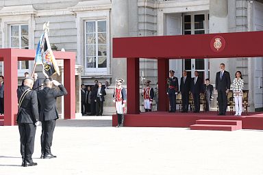 Durante el evento, el jefe de Estado también ha entregado la Placa de Honor de la Orden del Mérito Constitucional a la Policía Nacional, que fue recogida por el director adjunto operativo en representación de toda la institución, y ha pasado revista a la formación de varias unidades de la Policía Nacional.