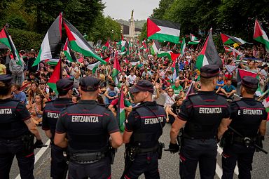 La Vuelta a España se vio interrumpida este miércoles a su paso por Bilbao cuando cientos de manifestantes a favor de la causa palestina comenzaron a lanzar banderas y pancartas a los corredores cerca de la llegada a la meta, como muestra de protesta por la participación del equipo Israel en la carrera.