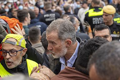 Felipe VI se resistía a marcharse y ha escuchado a varios ciudadanos que le contaban la situación límite en la que se encontraban, con alguno de ellos se ha fundido en sentidos abrazos. Durante el tumulto, una persona ha resultado herida, según ha informado el enviado especial de 'RTVE'. Dos escoltas de los Reyes han tenido que ser atendidos por las lesiones sufridas.